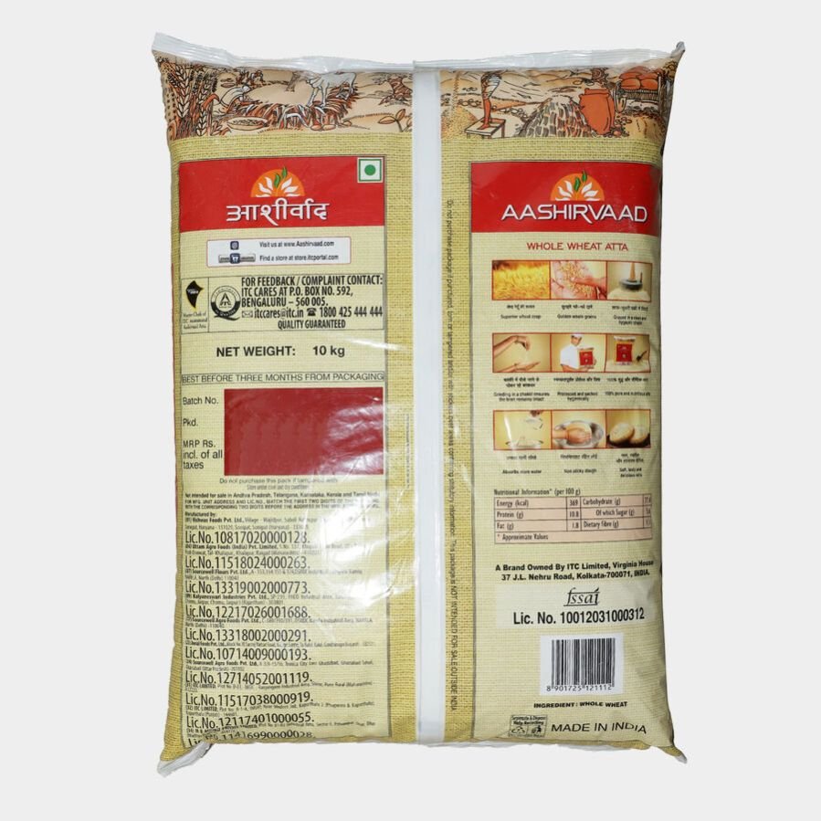 Aashirvaad Whole Wheat Atta is made from carefully selected whole wheat grains, processed using traditional chakki grinding to retain natural fiber and nutrition. It ensures soft, fluffy rotis with rich taste and health benefits.