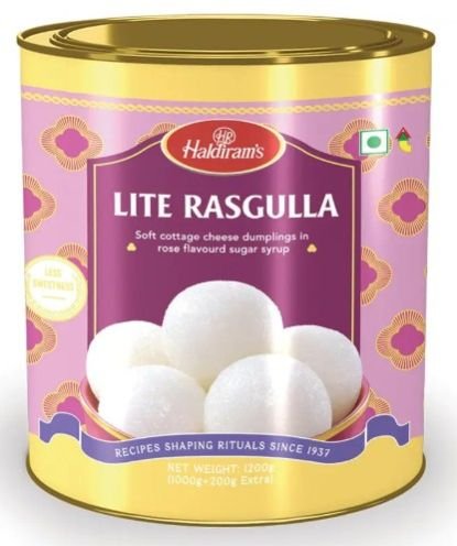 Haldiram’s Lite Rasgulla Tin offers melt-in-the-mouth chhena dumplings dipped in light sugar syrup. Designed for those who love sweetness but want a lighter version, this tin brings tradition and indulgence together. Perfect for Diwali, celebrations or as a sweet treat after meals.