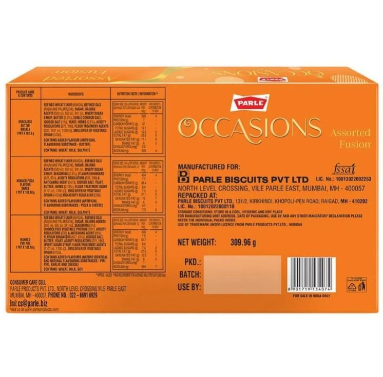 Nutritional Information (per 100 g): (estimate / as per standard Parle fusion packs)